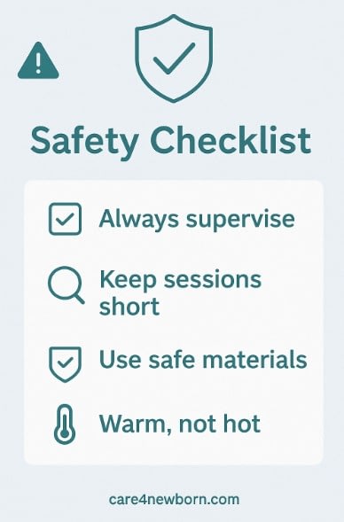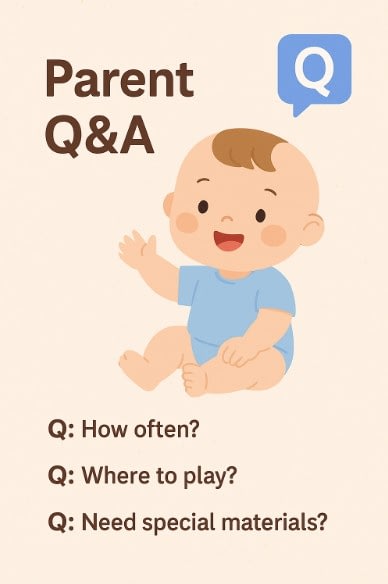 2–3 times per week, about 10–15 minutes per session. Too much can overstimulate your baby.