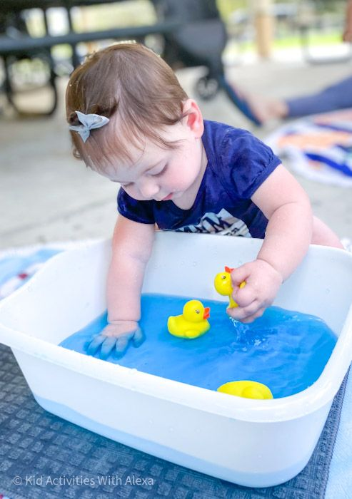 If ice isn’t your thing, let baby have a “car wash” indoors. Just grab a bin, toy cars, and fill with baby-safe soap and water.