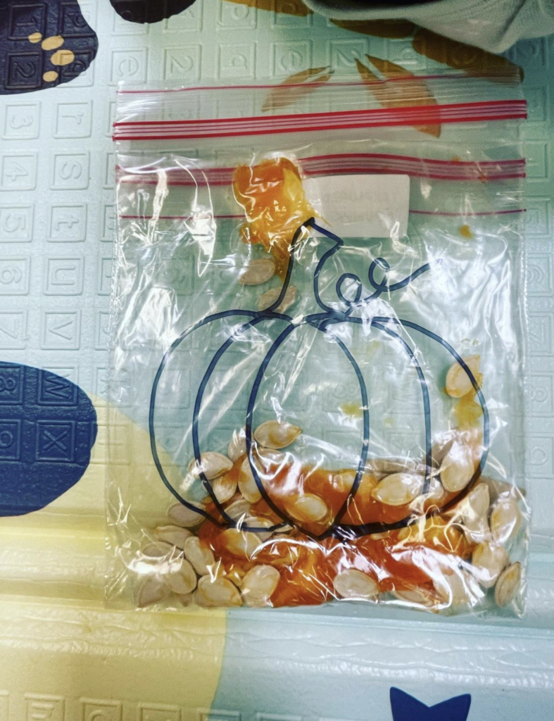 Aubrey used the materials in the bin to scoop, play, explore, and build suns.