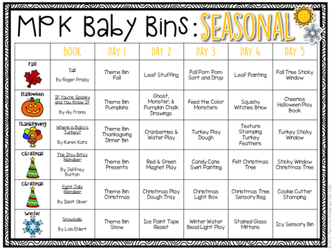 Why is it harder to find seasonal activities, especially winter-themed ideas for babies?