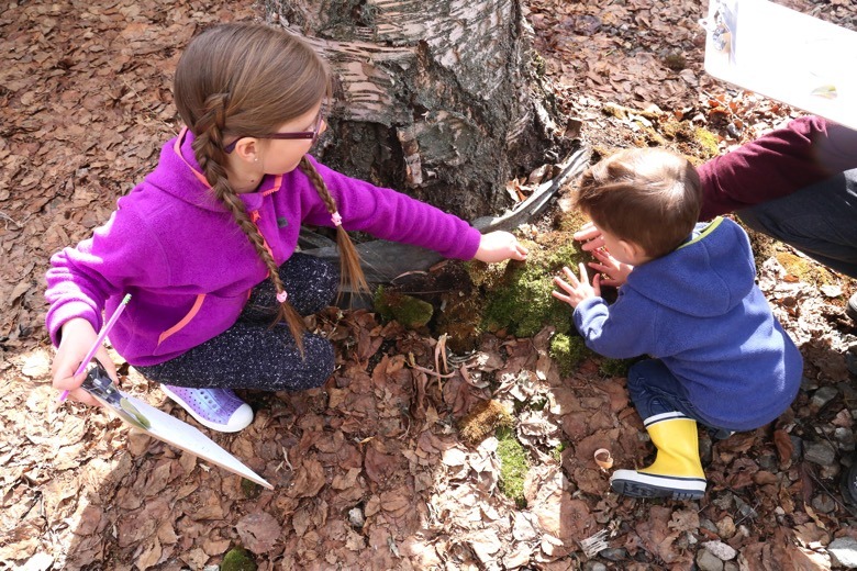 Go on a (no touch) bug hunt: Go on a hunt to find all sorts of crawly creatures under logs or on tree trunks. We love using this little bug catcher to observe our findings for a few hours.