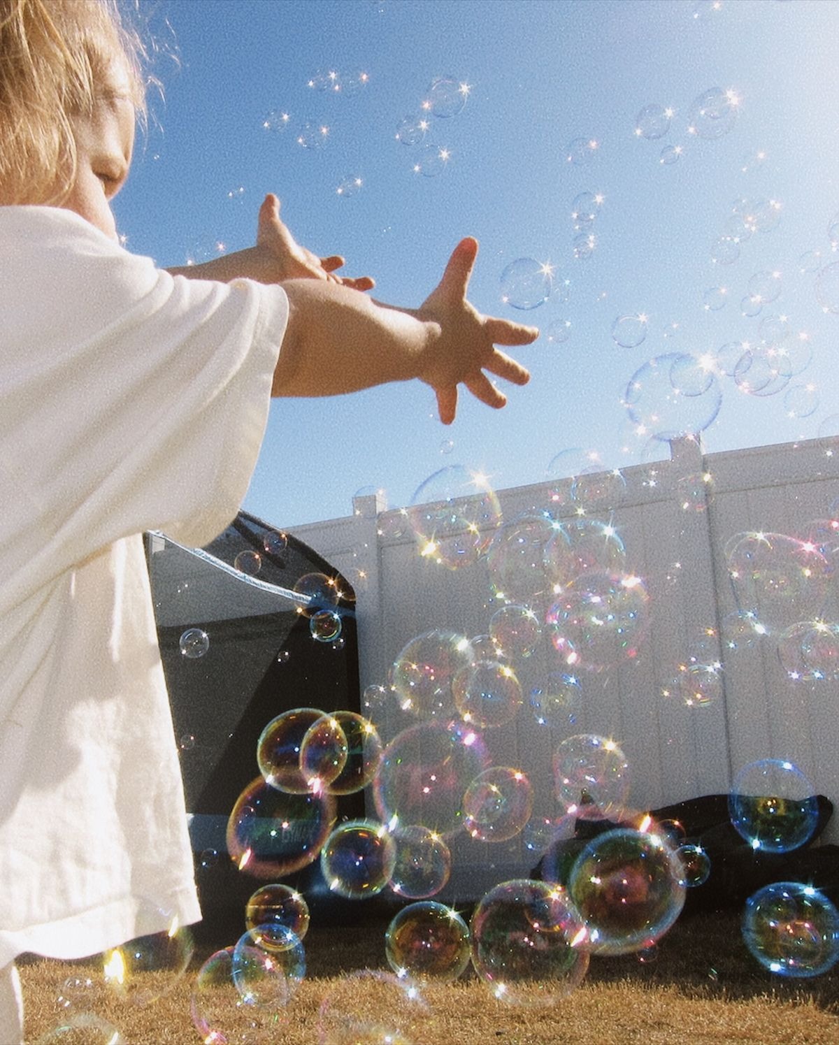 Blow bubbles.