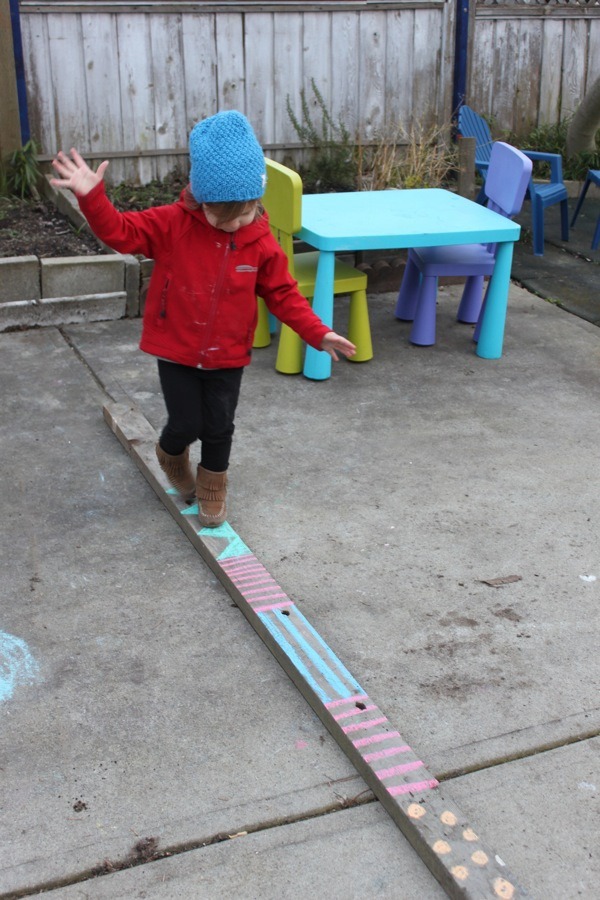 Lay down a wooden beam or a sturdy log and invite your child to walk across without falling off. This simple challenge strengthens coordination, concentration, and core strength.