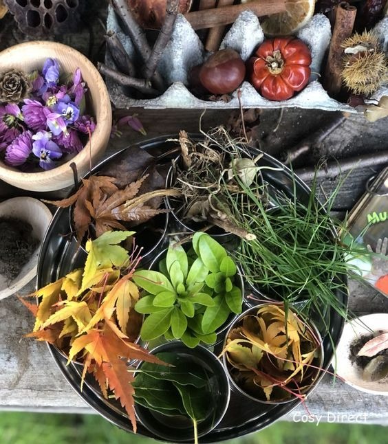 Larger Items: Use big leaves, flowers, or pebbles to avoid choking hazards.