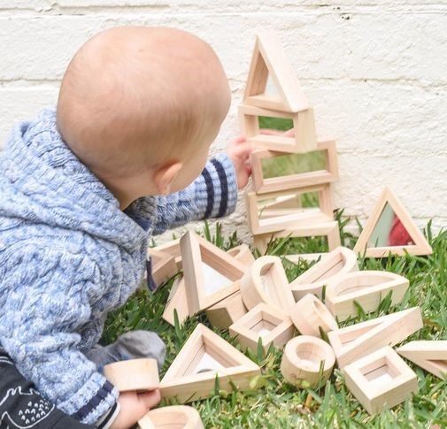 Unlike traditional magnifying glasses, this wooden block set is safe and sturdy for all your preschoolers’ fun outdoor activities.